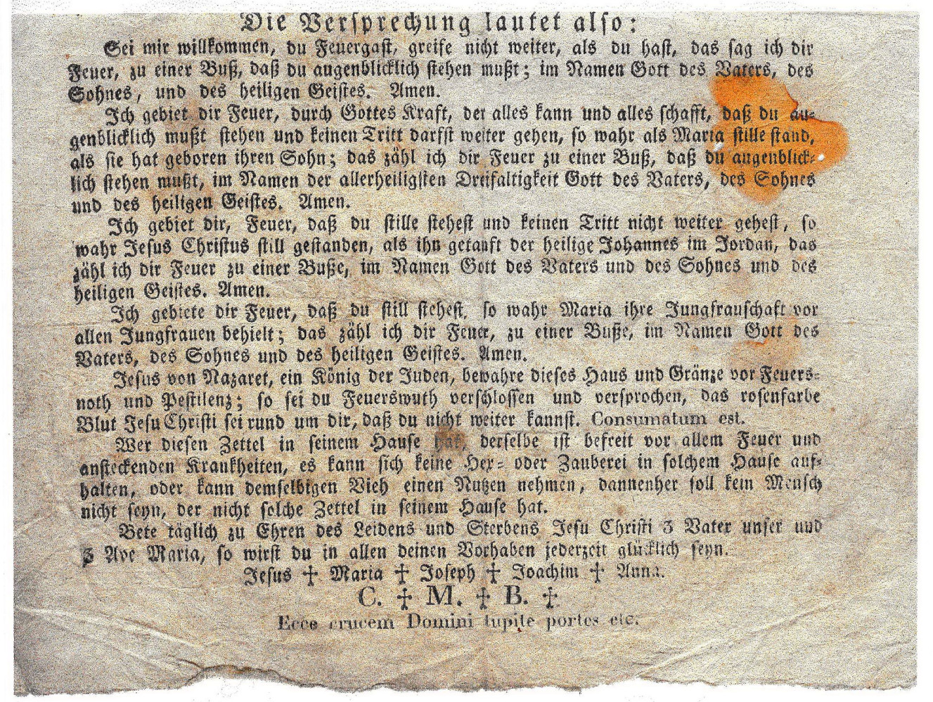 Tiefgläubige Menschen verließen sich aber lieber auf Gebete als auf einen Aberglauben, wie ihn der nachfolgende „ Feuersegen „ auf den beigefügten Bildern beschreibt.