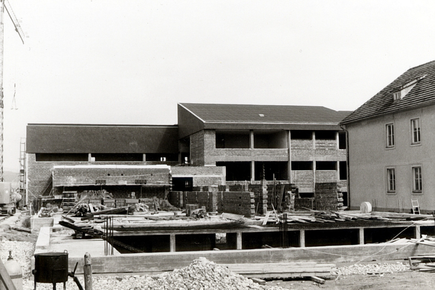 Im Sommer 1971 war dann endlich der Baubeginn des Hauptgebäudes, des Turnsaales und eines Lehrschwimmbeckens. Nach zweijähriger Bauzeit wurde das Bauwerk ohne Turnsaal und Lehrschwimmbecken im Sommer 1973 fertig. Mit dem Schuljahr 1973/74 konnte erstmals in der neuen Schule unterrichtet werden. Etwas Besonderes waren damals die Teppichböden in jedem Klassenzimmer, die orangen Türen und die grünen Heizkörper und Jalousien bei allen Fernstern. Als eine der wenigen Schulen stand in jeder Klasse ein Overheadprojektor mit einer dazugehörenden Projektionsfläche für den Unterrichten zur Verfügung. Den Unterricht bereicherte es, dass es nun auch einen eigenen Physiksaal und einen Werkraum gab. Die Fertigstellung der Lehrküche und des Mädchenhandarbeitsraumes ließ noch auf sich warten.