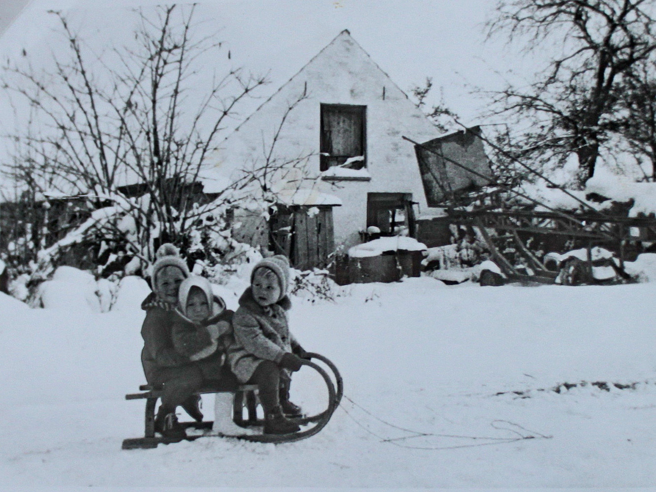 auf der Lichtenauer Straße in Rainbach war immer ein tolles Erlebnis, wenn frischer Schnee lag und noch kein Rollsplit gestreut war. Gestartet wurde auf Höhe „Gottliab-Leitner“ (Lichtenauer Straße 7). Es wurden alle, bis zu 4-5 Schlitten zusammengehängt. Nur am ersten Schlitten war der Steuermann, meist ein erfahrener Bub. Er lag am Schlitten bäuchlings und verhakte seine Beine mit dem Schlitten hinter ihm. Manchmal saß auch noch ein Kind auf seinem Rücken, um den Anpressdruck der Lenk-Kufen zu erhöhen. Ganz langsam setzte sich die Schlittenkette in Bewegung. Man konnte noch abspringen, nachschieben und wieder aufspringen. Spätestens beim „Stoaköna“ (Lichtenauer Straße 25) sollten alle gut sitzen, denn ab dort ging es rasend flott bergab mit viel Geschrei und Lachen, Richtung Bruckmühle. Vor der scharfen Linkskurve legte der Steuermann ein paar Bremsmanöver ein und die letzten Schlitten pendelten weit aus und bremsten insgesamt den ganzen Tross. Selten riss dabei eine Schlittenschnur, aber wenn doch, dann landeten einige Schlitten im weiten Bogen im Straßengraben. Nach der alten Feldaistbrücke wurde die Fahrt wieder langsamer und endete in der wieder ansteigenden Straße. Voller Begeisterung gingen wir den Weg zurück, sammelten verlorene Kinder, Mützen und eventuell Schlitten wieder ein und wiederholten das Abenteuer. Ernsthafte Verletzungen gab es dabei nie und entgegenkommende Autofahrer waren selten und winkten freundlich mit der erhobenen Faust. 😊
