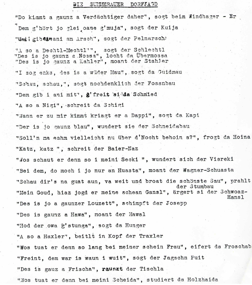 Anbei auf den Fotos ist der vorgetragene Text der „ Summerauer Dorfjagd“.