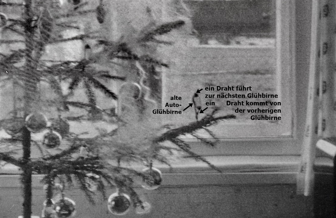 Mein Vater Alois Knogler bastelte bereits im Jahr 1946 eine elektrische Christbaumbeleuchtung. Er lötete an Glühlampen, die er von umherstehenden Militärfahrzeugen hatte, isolierte Drähte. Er verband sie so miteinander, dass immer ein Draht wieder zum nächsten Lämpchen führte. Die Anzahl der Lämpchen wurde durch die jeweilige Voltzahl der Einzellämpchen bestimmt. Die addierte Voltzahl aller Lämpchen ergab 220 Volt. Der stromführende Draht der Glühlampen wurde auch zugleich für die Befestigung an den Christbaumästchen verwendet; er wurde einfach über den Ast gedreht. Der elektrische Christbaum erstrahlte erstmals 1946 im Hause meines Großvaters Wenzl Knogler in Summerau 94. Nach der Heirat meiner Eltern wurde die Christbaumbeleuchtung in deren Haushalt mitgenommen. In meiner Kindheit feierten wir immer schon am späten Nachmittag Weihnachten und schalteten die Beleuchtung ein. Anschließend besuchten wir meine Großeltern. Die Baumbeleuchtung ließen wir aber eingeschaltet. Damit möglichst viele unsere besondere Beleuchtung sahen, wurden die Vorhänge nicht zugezogen. Die Nachbarkinder und meine Mitschüler in der Volksschule beneideten mich um diese Christbaumbeleuchtung.
