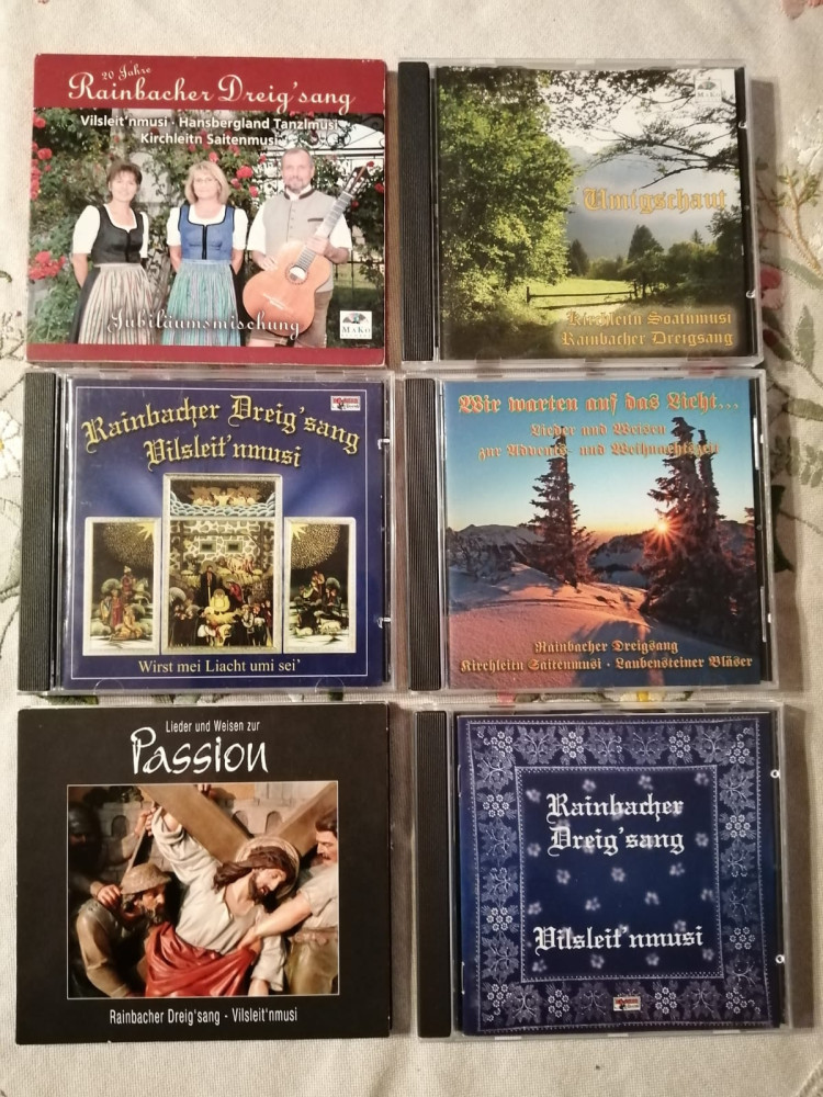 Unser reichhaltiges Repertoire erstreckt sich von Liedern durch den Jahreskreis, Tanz – und Liabsliedern, Weihnachts– u. Passionsgesängen bis zu geistlichem Liedgut, das wir bei unzähligen Messgestaltungen einbringen konnten. Vieles davon haben wir auf insgesamt 7 CDs dokumentiert:
