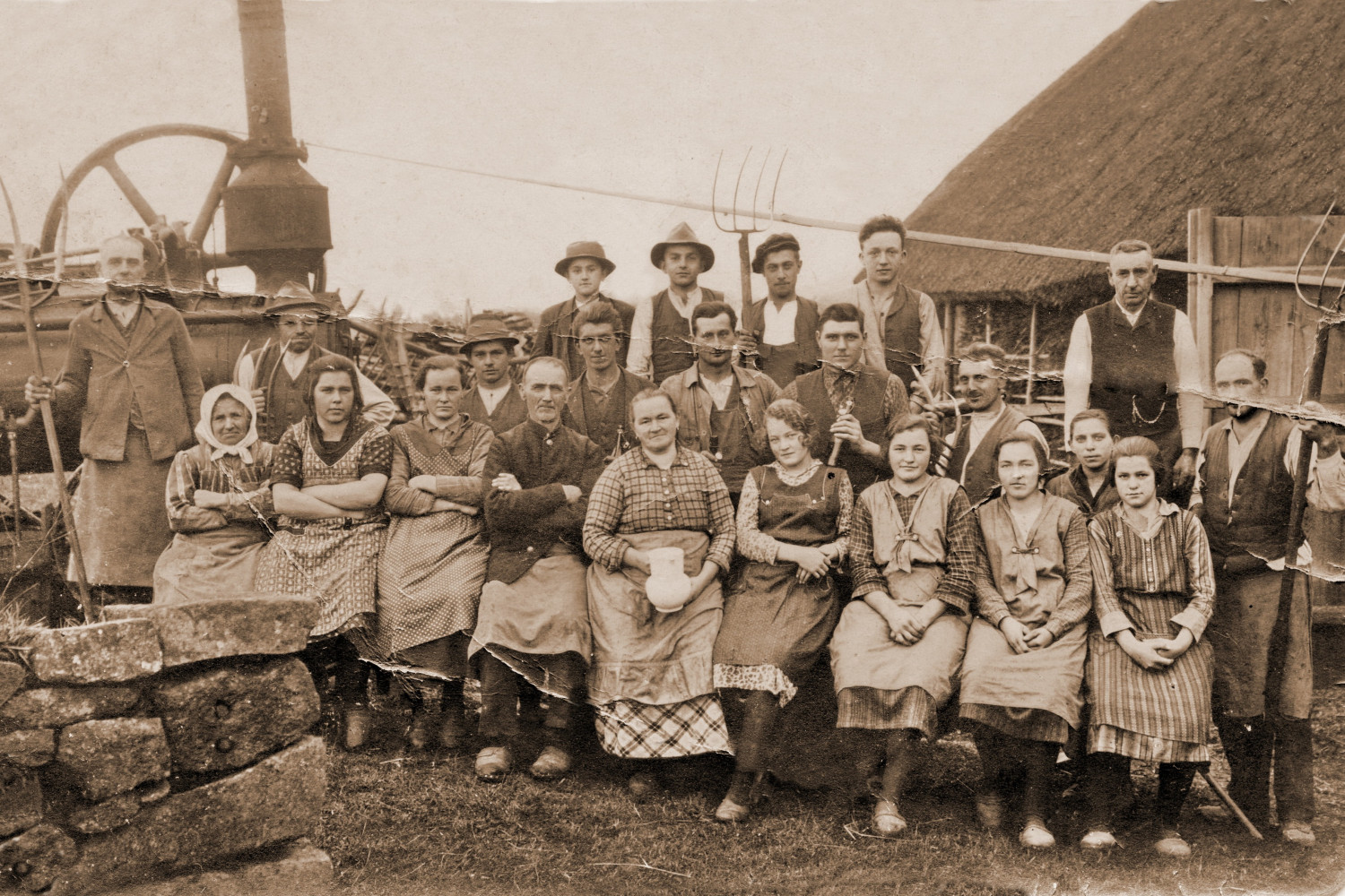 Beim Maschinendreschen wurde immer von einigen Nachbarn zusammengeholfen. Es wurden za. 20 -25 Arbeitskräfte benötigt um einen reibungslosen Arbeitsgang zu gewährleisten. Man brauchte folgende Personen: