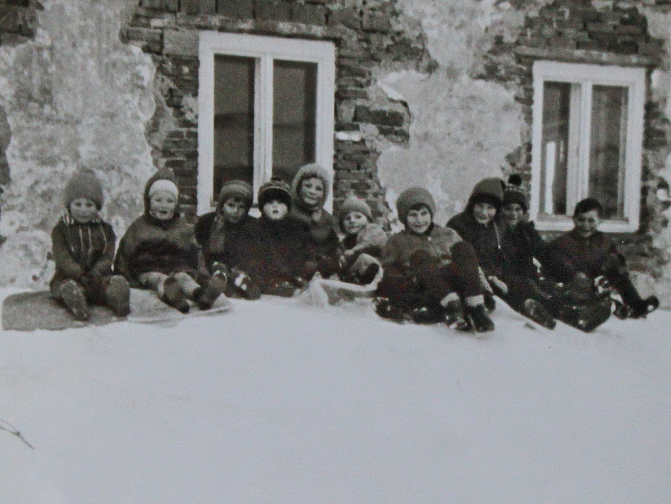 Sacklrutschen und Schlittenfahren in Rainbach Ost anno 1970.