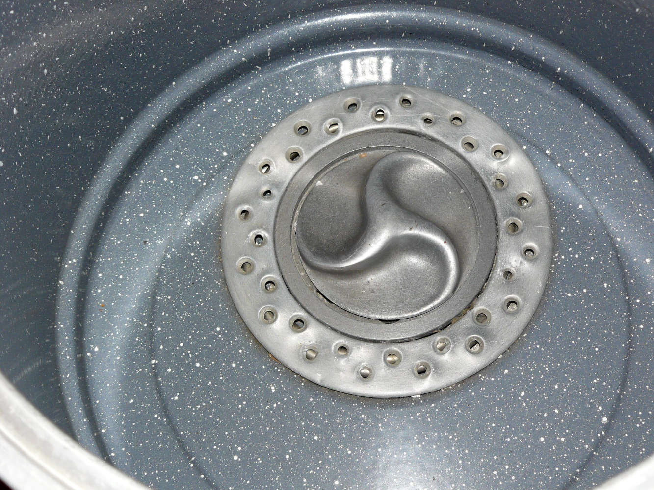 Bei der Waschmaschinen links hinten geschieht dies durch mehrere Wasserstrahlen, die aus kleinen Löchern spritzen.